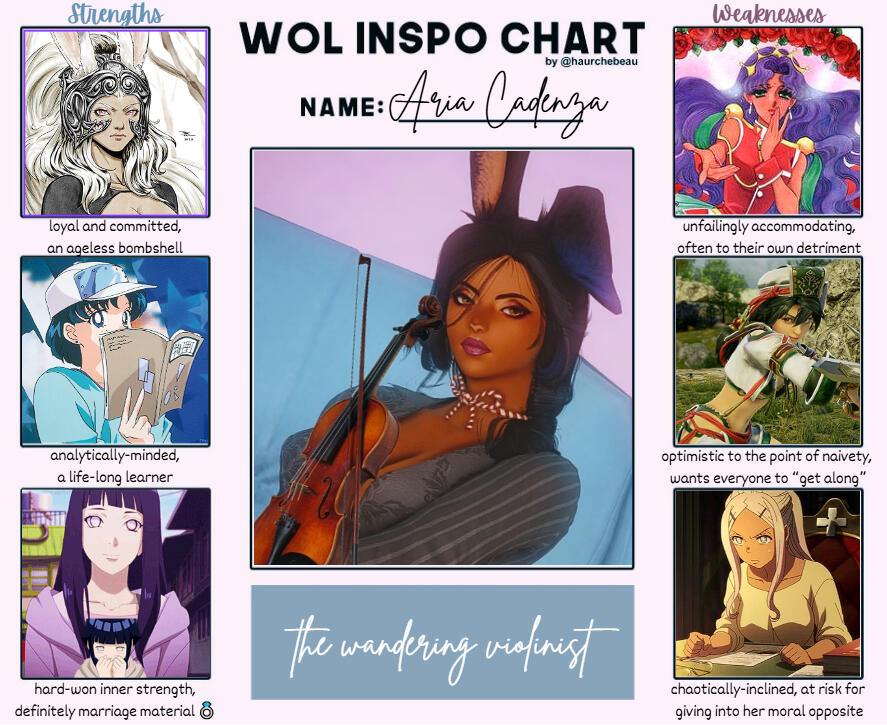 Aria is an earnest, all-embracing, seeker of "educational moments". When she isn't practicing, she spends a lot of time misplacing personal treasures, forgetting important things, and thinking of what delights people the most! Aria's languages of love are, above all else, music, mending and crafting.She's been my main character since being first introduced to FFXIV in '20 by my IRL boyfriend of +5 years--coincidentally the lucky lalafell in Aria's life :)--and was made Rava Viera without a second thought as homage to one of my favorite final fantasies (FFXII). As very short and very loud Midwesterner who loves karaoke, casual streaming, gaming, and befriending perfect strangers, Aria's height and reserved nature stands in stark contrast to my IRL personality! Despite our differences, two things we will forever share is our passion for public education and musical expression.I really love getting feedback and insight on my carrd @ariacadenza. I have learned so much from friends met along the way, and am enthusiastic to continue growing and iterating my random assortment of skills!